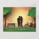 Cartão Postal Casal de recorte de papel em Park Sunset, biciclet