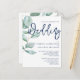 Cartão Postal Casamento Azul do Marinho Verde Eucalyptus Moderno