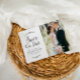 Anuncie sua data de casamento com este cartão de roteiro de na moda com elementos botânicos e uma foto do casal. O texto é editável junto com a bela imagem.