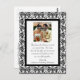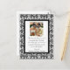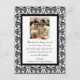 Um elegante design preto-e-branco de renda de cor damasco com um tema de roteiro de rico para enquadrar sua foto de casamento. Envie um obrigado especial e sincero a seus amigos e familiares.
