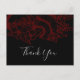 Compartilhe suas Obrigados especiais com este casamento de Flor Vermelha e Flor Negra Vermelha e Negra. Obrigado design postal com um coração realístico belamente detalhado que sobe flores e verde sobre fundo negro. Adicione sua mensagem especial e personalize este modelo para atender às suas necessidades.