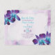 Casamento de flores de orquídea de Dendrobium azul-turquesa e azul-roxa salve-se a data com a cor d'água roxa lilac e turquesa e a cor d'água rasgada e a cor de borda rasgada, em papel de fundo para o casamento, exceto a data. Este tipo de orquídea é violeta roxa e azul-lacre ou azul-turquesa e é chamada de orquídea Dendrobium azul. Há também outros tons de púrpura e azul ou turquesa nesta flor. Esta flor de orquídea em particular é muito barato e é muitas vezes usada em temas de casamento de pavão. O fundo desta salva, a data, é um púrpura lilás pálido e uma lavagem de aquarela turquesa que adiciona uma bela cor ao design de convite. As bordas simuladas de papel rasgado do fundo por trás do casamento exclusivo salvam o layout de texto de data adiciona ao estilo de aquarela. Substitua a foto no verso por sua própria foto de noivado. Este é um casamento de excelente, salvo a escolha da data se sua flor for uma orquídea Dendrobium azul ou se você estiver pensando em ter um tema de cor de pavão ou um casamento temático roxo e turquesa ou roxo e teal. Este casamento de Dendrobium azul, salvar a data é uma escolha excelente para um casamento de primavera ou um casamento de verão. Também pode funcionar para um casamento no inverno para o qual você quer usar cores brilhantes e alegres. Este romântico casamento entre orquídeas que salva a design da data lembra um belo jardim com sombras pastéis macios e cores vibrantes e ousadas de tom de joia.