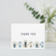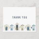 Mostre aos seus hóspedes o quanto apreciam a presença e presentes deles com este casamento de praia costeira, obrigado. Design simples de casa de praia em uma paleta colorida azul e branca, adicione seu endereço de retorno e seu obrigado ao verso.