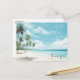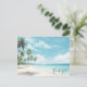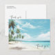 Cartão Postal Casamento com Watercolor Palm Tree Beach Obrigado