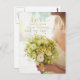 PostCard de casamento adorável com uma fotografia de uma noiva e um maravilhoso buquê de flores. Este é o melhor e o Design número 1 do seu dia especial.