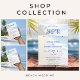 Cartão postal de casamento de praia de verão azul com palmeiras.