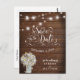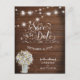 Country Save the Date Wedding - Madeira de celeiro russo com luzes brilhantes de cordas no topo e um jarro de pedreiro com fôlego de bebê e flores de camomila pintadas à mão originais (ou margarida branca). Belo texto caligráfico para Salvar a Data - Design por BarefootBride™