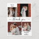 Imagem elegante, moderna, minimalista, preta e branca, colagem fotográfica, obrigado personalizado de casamento que você faz. modelo de cartões de agradecimentos de casamento com quatro (4) fotos na frente e uma (1) foto no verso. Com o texto "obrigado você" em um script de fontes swash-tail de caligrafia manual escrevendo letras em preto sobre fundo branco. Pequena forma cardíaca entre os nomes. Personalize seu nome e obrigado da mensagem. Se preferir escrever manualmente a sua nota, basta eliminar o texto de amostra para obter mais espaço. Se você precisar de ajuda ou item correspondente, entre em contato comigo!
