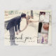 Diga "Obrigado" em estilo. Seus convidados de casamento vão adorar esse guião quic 4, foto colagem, design de Cartões de agradecimentos de Casamento com uma letra de guião preto com letra chic. Elke Clarke © Adicione seus nomes e data de casamento à frente e digite sua nota personalizada de agradecimento ou exclua o texto para criar um espaço para escrever manualmente sua nota personalizada de agradecimento. Outras cores disponíveis para o texto e quadros. Contate o designer.