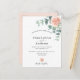 Na frente: Um fundo branco chic. Decorados com rosas de ouro rosa, flores florais e verde de eucalipto. Personalize e adicione seus nomes e detalhes do casamento. Letras negras. Fundo: fundo rosa dourado colorido.