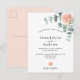 Cartão Postal casamento de eucalipto com flores de ouro rosa