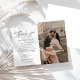 Simples Cartões de agradecimentos de Casamento de Fotos de Script Preto - Este cartões de agradecimentos mínimo emparelha um script preto limpo com um plano de fundo branco e um layout de foto de cheio. Uma maneira moderna e eterno de mostrar apreciação depois do seu casamento. Excelente para eventos temáticos elegantes, contemporâneos ou negros e brancos.