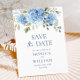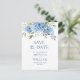Cartão Postal Casamento de Hydrangea Azul Elegante Salvar a Data