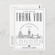 Uma forma excelente de mostrar apreço ao convidado que viajou tão longe do seu caminho para vê-lo, nesta bela cidade. Este obrigado especial que você faz é adaptado ao convidado que esteve no seu casamento na bela cidade de Londres. Ele apresenta uma linha do horizonte estilizada da cidade na frente do cartão. Ao contrário, é um ponto para sua própria mensagem exclusiva. Use as funções de personalização para adicionar uma foto, se desejar.