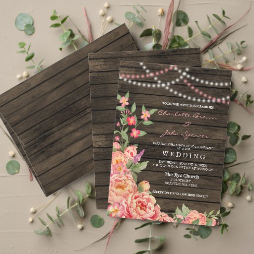 Barn wood Peony Rustic Wedding Invitations SetCriado por Maria G