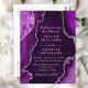 Este elegante e glamouroso convite de casamento apresenta um fundo de mármore roxo e agitado com sotaques falso prateados. O texto combina o script manuscrito e as fontes sans serif modernas para um aspecto elegante e sofisticado. Isso será perfeito para outono e casamentos no inverno.