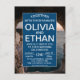 Este moderno convite azul marinho náutico é perfeito para um cruzeiro ou festa de noivado de praia, casamento após festa, aposentadoria, graduação ou qualquer evento feliz. A simples design apresenta uma bela paisagem marinha, ondas marítimas, animais marinhos e recifes coloridos.