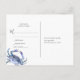 Cartão Postal Casamento de Praia RSVP Watercolor Blue Crab