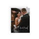 Recem casados! Anuncie seu casamento com a família e amigos com este cartão-postal simples e moderno. Ele apresenta uma sobreposição de script manuscrito branco. Personalize adicionando nomes, data, local, foto e endereço.