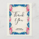 Um obrigado de casamento ou outra ocasião que você faz. Projetado com um quadro de flores, posições e picos silvestres, cor-de-rosa e azul, com vários galhos e folhas. Colorida e brilhante. O centro é uma imagem falsa de pergaminho. Soft e verão. O verso tem uma mensagem que você pode personalizar.