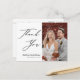 Escrito Branco Natural Elegante Foto Moderna Casamento Minimalista Obrigado Cartão-Postal. Expresse o seu agradecimento aos seus amigos e família que fizeram do seu casamento um especial extra com este belo cartões de agradecimentos de fotos de casamento. Todos os textos estão pré-organizados para que você personalize fácil e rapidamente com suas próprias palavras.