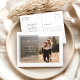 O Cartão-postal de data de gravação de script moderno apresenta uma caligrafia elegante e uma design minimalista, destacando lindamente a sua foto de noivado. Este cartão-postal simples e chique oferece um toque único e moderno para anunciar seu dia especial — avise-me se precisar de assistência com personalização!