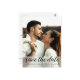 Personalize este clássico, moderno e chic Salve o design do cartão postal Data com sua própria foto vertical, nomes, data do casamento e local. Inclua seus nomes de cheio, data, local do local, site de casamento e endereço de devolução no verso. Uma transparência de banda branca na parte frontal ajuda o texto a permanecer legível com a imagem que você usa. Se tiver algum problema com o design, por favor, não hesite em contactar-me em info@lddesignloft.com. Parabéns no seu noivado!