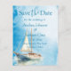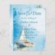 O nosso belo Casamento de Nave Navegante Salve o Cartão de Data é a mistura perfeita de uma beleza, uma sensação tropical livre. A aquarela azul serve como um belo pano de fundo e acentua o veleiro sereno.