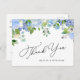 Cartão Postal Casamento Elegante Blue Hydrangea Greenery Obrigad