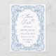 Elegante cartão postal de casamento Floral de Jardim Francês Vintage Azul Salve a Data.