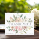 Lindo cartão postal de agradecimento floral de peônia em rosa aguado com escrita elegante abaixo das folhas de eucalipto verde sálvia e flores bonitas. Um cartão de casamento botânico chique para agradecer aos seus convidados. Personalize esses belos cartões postais com seus nomes e data de casamento.