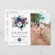 Cartão Postal Casamento Floral Roxo e Azul Marinho