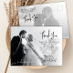 Orçamento, Simples Escrita Manuscrita Moderna E Elegante Sobrepõe Um Casamento Barato Com Barato Fotográfico Moderno Obrigado Cartão-Postal. Na moda, modelo de cartão de casamento minimalista com 1 foto na frente e 1 foto no verso. Texto "Obrigado" em uma bonito caligrafia de letra ou cobertura de fotos de script branco de tipografia. NOTA: é preferível recortar a foto frontal antes de carregá-la, e o casal é colocado no lado esquerdo da foto. É fácil adicionar o seu nome e obrigado à sua mensagem. Se precisar de ajuda ou item correspondente, entre em contato com o designer!