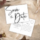Este Cartão Postal Mínimo Mínimo Negra e Branca, único e constante, combina simplicidade e modernidade para criar um convite espantoso que dá o tom para o seu dia especial. A tipografia do roteiro de caligrafia adiciona um toque de elegância, fazer perfeito para um anúncio sofisticado de casamento. Este cartão-postal de tendência não é apenas um convite; é uma declaração do seu estilo e do início da sua bela jornada juntos. Faça seu casamento realmente especial desde o início com este moderno e elegante salve o cartão postal. Explore toda a coleção de convites do Casamento Elegante Moderno Minimalista para itens adicionais que complementam sem problemas este belo cartão de data salvo.