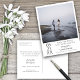 Este cartão postal é a maneira perfeita de deixar seus amigos e família saberem sobre seu próximo casamento. Possui uma design simples e minimalista com sua arte, moderna e elegante, incluindo sua foto em um fundo branco com texto simples contendo todas as informações vitais.