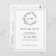 Cartão-postal de salvar a data de casamento atemporal apresenta um monograma minimalista com uma grinalda delicada. Perfeito para casamentos formais ou tradicionais, a tipografia elegante e a simplicidade tornam-no uma escolha versátil. Totalmente personalizável para combinar com o seu dia especial, este convite mistura sofisticação clássica com charme moderno. Para personalização ou produtos adicionais com este design, por favor, sinta-se à vontade para entrar em contato.