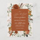 Casamento floral de aquarela russa salve o convite para data. Com belas ferrugem, terracota, cor-de-rosa pincelada, preta e verde-sábio, os detalhes da aquarela de eucalipto. Este convite de casamento moderno certamente define o estilo para o seu grande dia.