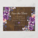 Cartão Postal Casamento Rustic Fuchsia Floral Woodland