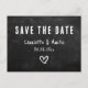 Casamento de giz rústico com costume salvar os cartões postais com um fundo de chalkboard preto com detalhes de casamento e um coração bonito.