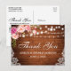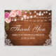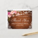 Casamento Rústico Madeira Aquarela Rosa Floral Luzes de Corda Renda Cartão de Agradecimento