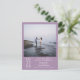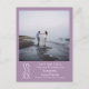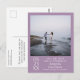 Este cartão-postal roxo ou lavanda é a maneira perfeita de deixar seus amigos e familiares saberem sobre seu próximo casamento. Possui uma design simples e minimalista com sua arte, moderna e elegante, incluindo sua foto em um fundo branco com texto branco contendo todas as informações vitais.