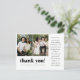 Obrigado de casamento moderno que você postcard mostra tipografia negra e uma grade de fotos com um simples obrigado.