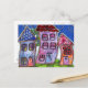Arte de Marta Harvey. Essa peça foi criada como uma colagem de papéis pintados (lixo eletrônico), montada para formar essas pequenas casas fundas. Uma vez reunidas, as janelas e outros detalhes foram adicionados para terminar a peça.