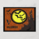Cartão Postal Castelo assombrado, morcegos e lua amarela
