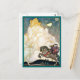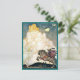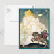 Prince em cavalo branco olha para um caminho através das nuvens até um castelo. Ilustração de arte em Vintage feita pelo artista sueco John Bauer.