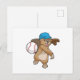 Cartão Postal Castor no Esporte de Beisebol com Boné