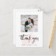 Este obrigado elegante e moderno que você faz no postal apresenta sua foto favorita de casamento, juntamente com um roteiro casual escrito à mão e um splash cor-de-água rosa-pincelada.