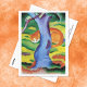 Um cartão-postal de belas artes com a pintura, Children's Picture - também conhecido como Cat BeBack a Tree (1912) pelo expressionista alemão Franz Marc (1880-1916). Um gato de cor gengibre dormindo atrás de uma árvore azul na grama. Marc usou cores primárias em suas pinturas expressivas. Ele também era membro do Blue Rider Group of Artists.