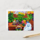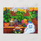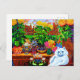 Cartão postal com a pintura de animais de Louis Wain Master of Cat College (1860-1939). Um gato branco pensativo com olhos azuis impressionantes senta-se pesadamente ao lado de uma variedade vibrante de flores bonitas. A majestosa faculdade de gatos venta no fundo sob um céu rosa e azul. Um presente maravilhoso para amantes de gatos e arte inglesa.