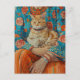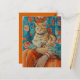 Mulher, uma mãe de gato, vestida de roupa cor de laranja turquesa segurando um gato no colo - Dia da Mãe de Gato